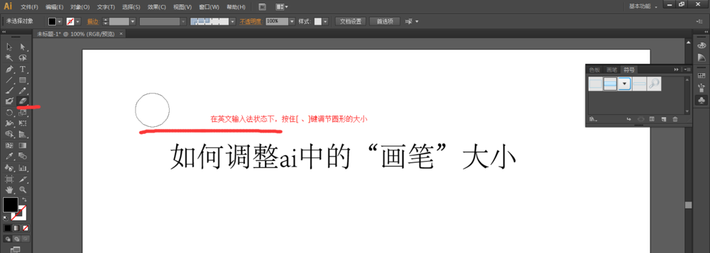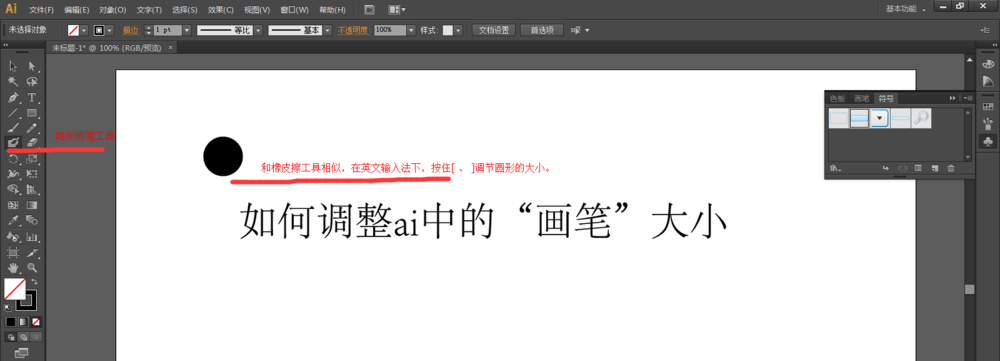 其实ai中画笔是没有大小的。画笔主要是通过路径和路径描边实现的。初学者困惑的是调节修改区域的面积的大小,当作了ps里面的画笔大小的调节。ai中修改工具区域调节在不同的工具中,调节的方式是不同的。例如橡皮擦工具、斑点画笔工具、符号喷枪工具、晶格化等工具都有着区别。