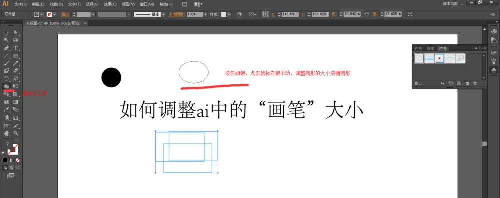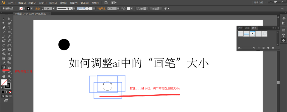 3、符号喷枪工具即符号工具内部的调整方式可斑点画笔工具一样的,都是用[、]调整大小。