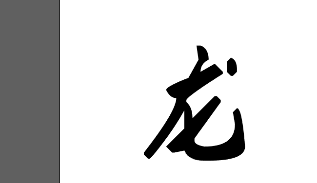 2、然后呢,我们在新建的页面用文字工具,在页面上打一个龙字,小编这太电脑是新的,很多字体都没有安装上去,所以小编就随便选用了一种字体,在这边应用的是叶根字体,很多时候,设计霸气的毛笔字可以用固有的毛笔字体和宋体字来设计。然后在上面进行修饰即可。小编这边就比较拙略的示范一下,咱们注重的是过程不是结果哈。