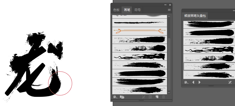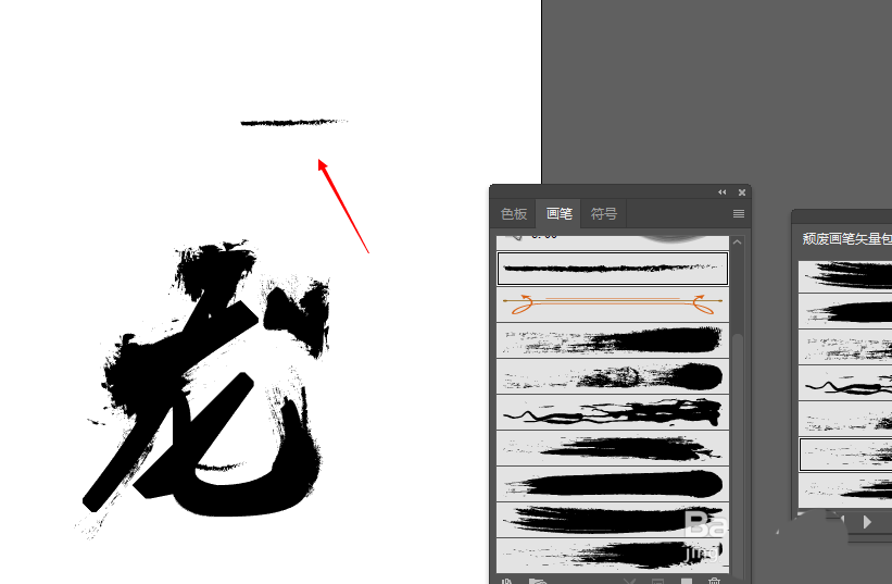 4、然后我们选择右边你喜欢的笔触用画笔工具在上面做一些点缀,如果这边的笔刷实在没有您喜欢的,也可以自行到网上去下载一些笔刷素材,这也是可以的。小编这边就随意比划一下吧哈哈。