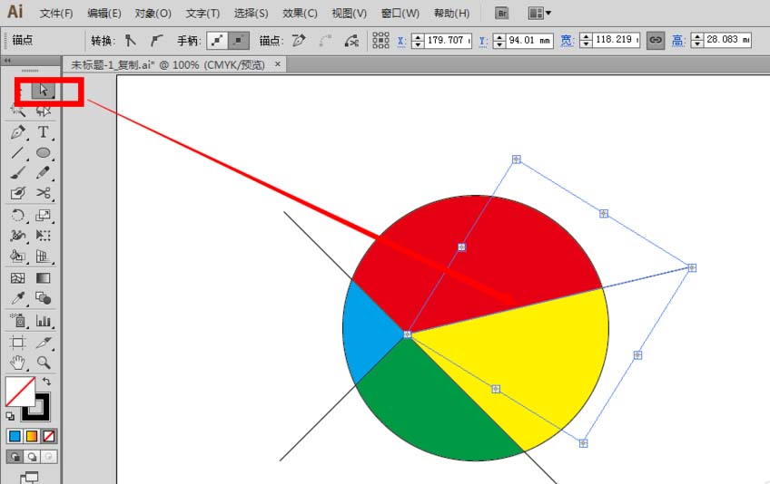 1、使用白色箭头”直接选择工具“,单击选中其中想要删除的线条,按住键盘上的”delete键