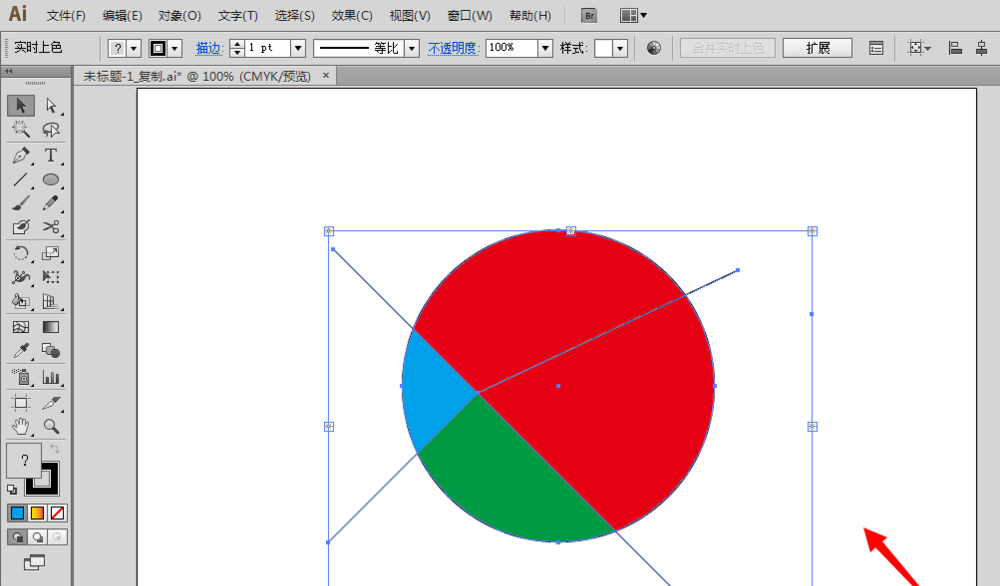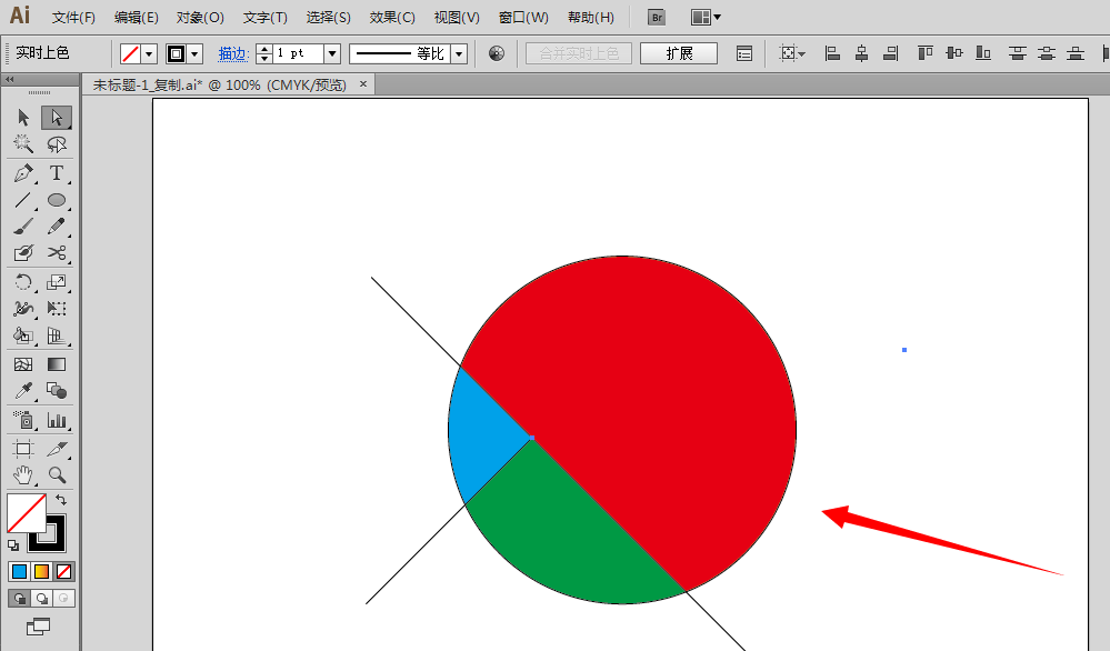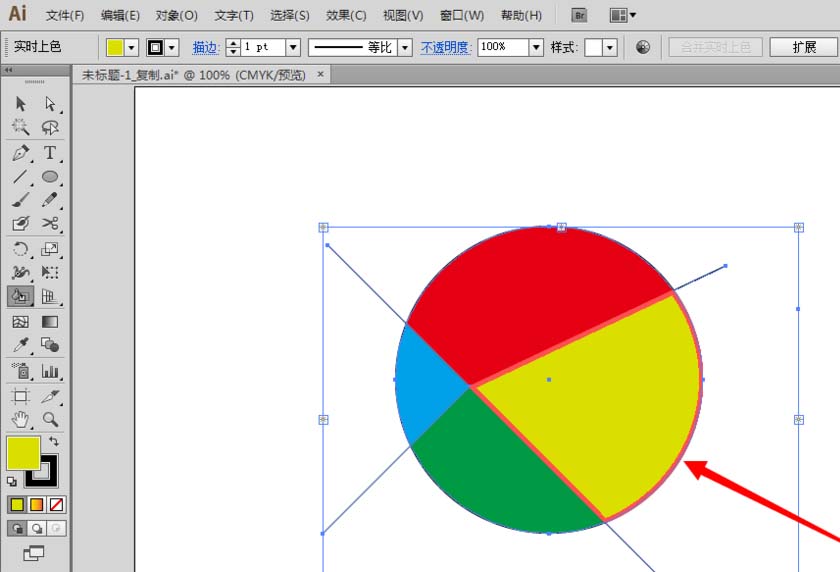 7、再在软件左边单击使用“实时上色工具”,在要填充颜色的那部分单击一下