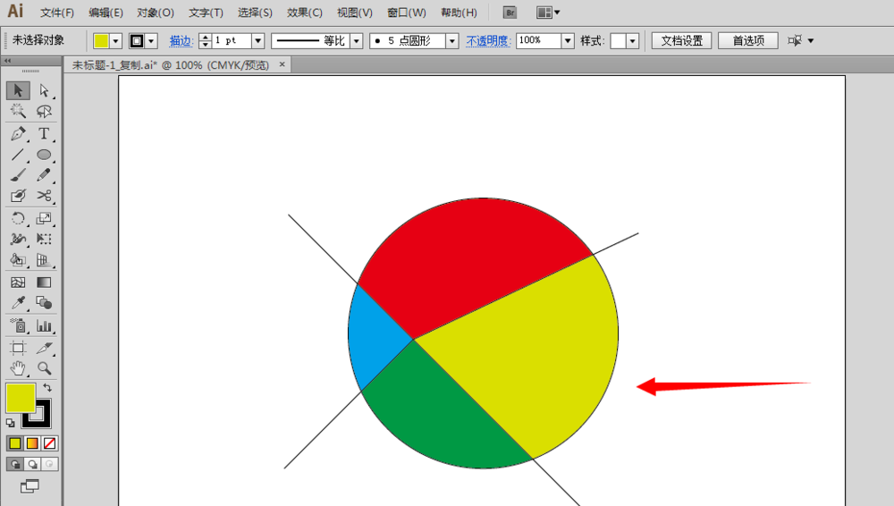 3、前面是删除颜色种类,那么增加颜色又怎么办呢?首先使用直线段工具,在图形上面绘制出一条直线,绘制完直线,我们可以看见,它并没有直接变成新的颜色