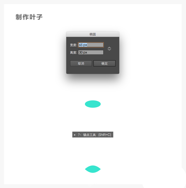 首先创建一个65*30px的椭圆