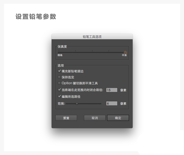 打开铅笔工具选项面版