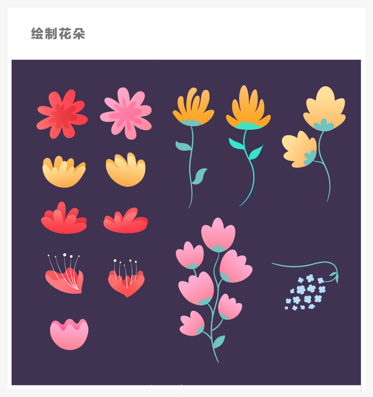 不过有些花朵可以使用椭圆拼接出来哦~