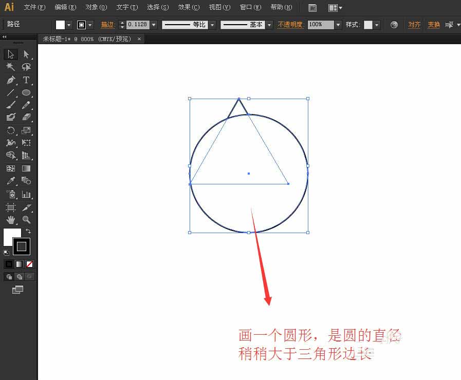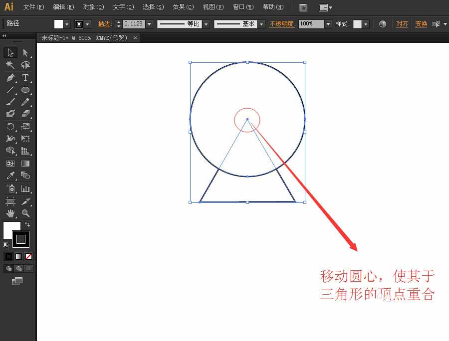 5、做好圆后,移动圆心,使其与三角形的顶点重合。