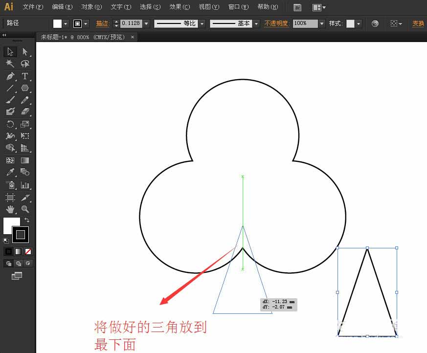 9、合并后的效果如下图,然后做一个三角形,方法和之前做黑桃一样。