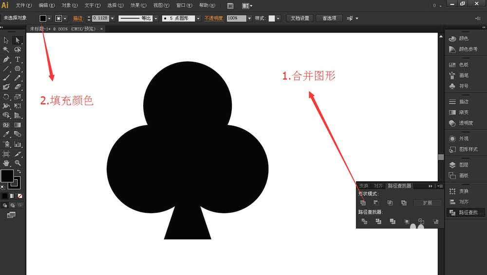 11、然后用黑箭头选中所有图形,合并图形,填充黑色,这样一个梅花就做好了。至此,扑克牌的四种花色我们全部做好了!