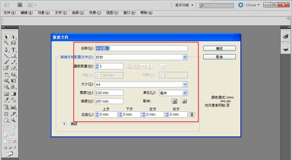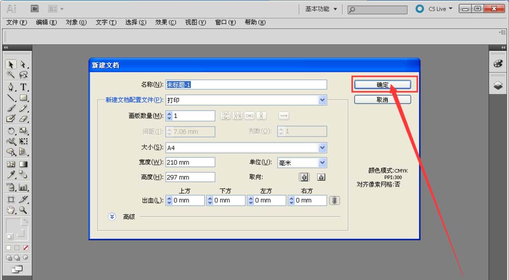 4、设置好新建文件的属性以后,直接点击确定,进入新建的文件内。