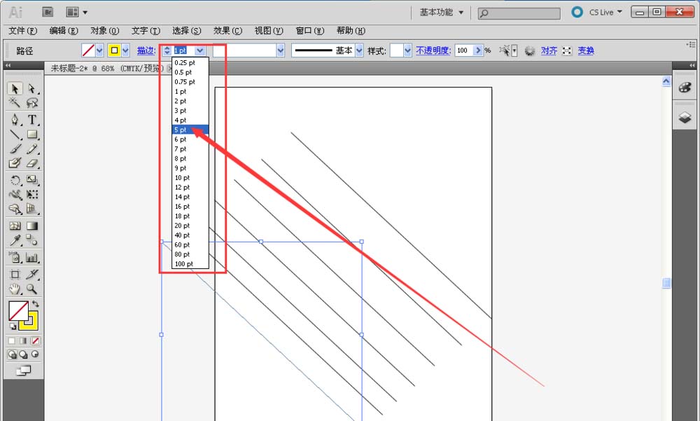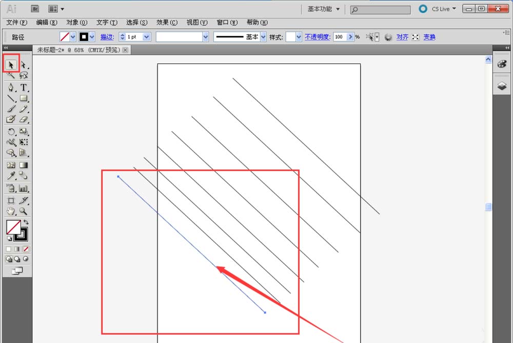 6、选中选择工具,选中其中一条线。