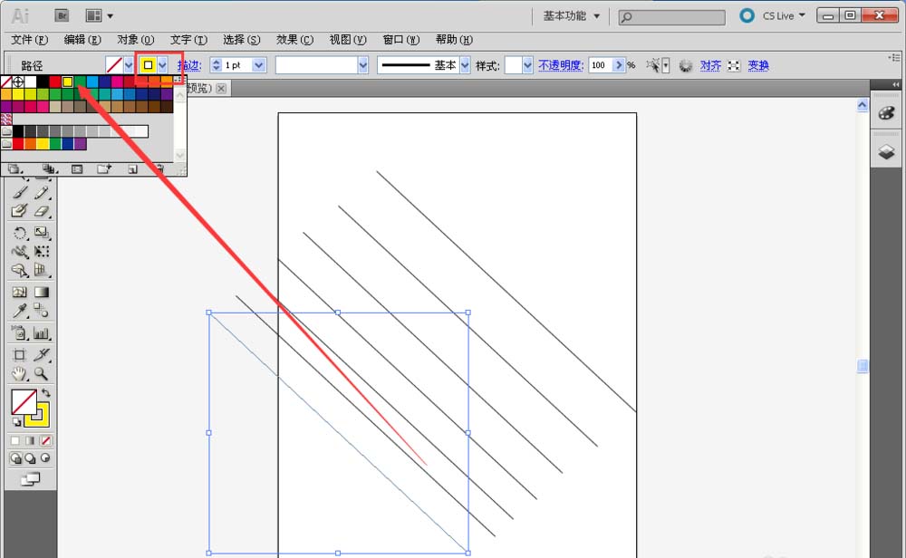 7、在上面属性栏处找到边框颜色显示处,点击进去更换线条颜色。