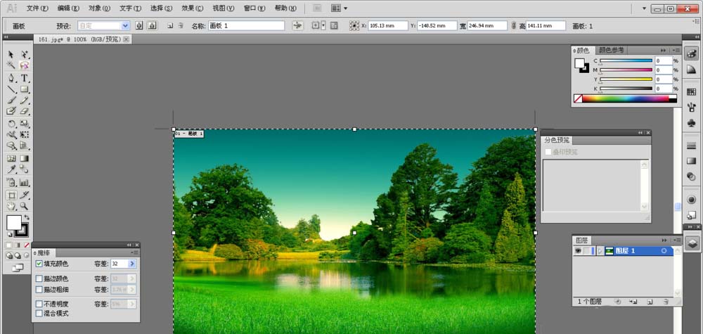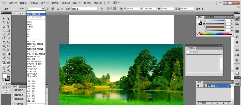 1、打开Adobe Illustrator CS5软件,把图片拖入,选择适合图稿的边界,然后在点一下灰色地方