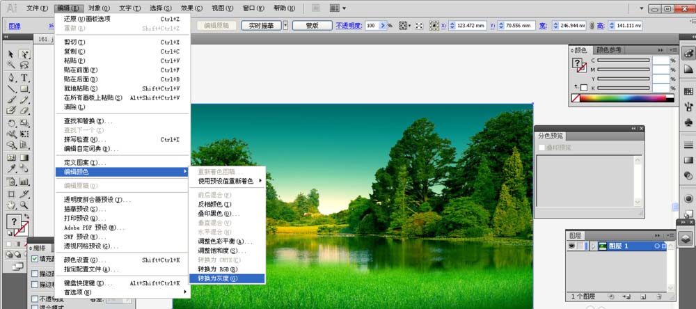 2、然后点编辑,在选择编辑颜色,点转换为灰度就可以了