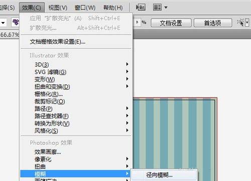 3、之后我们直接的打开效果化的菜单栏在里面找到一个径向模糊的选项打开即可
