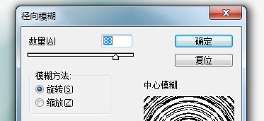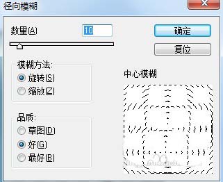 4、这时候软件系统就会自动的弹出一个径向模糊的设置数据窗口了,我们就可以进行设置了
