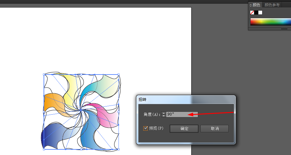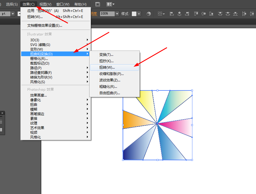 6、再选中图形到效果—扭曲和变换—扭转,如图所示