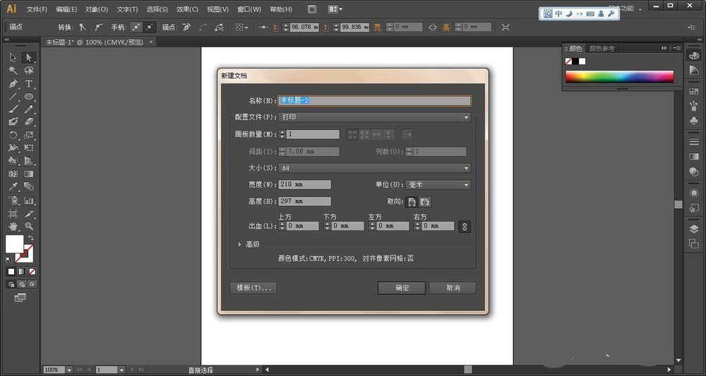 1、打开AI,新建一个文档,参数可自定 ,可默认,单击确定