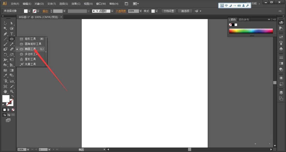 2、用椭圆工具在文档中画一个椭圆,