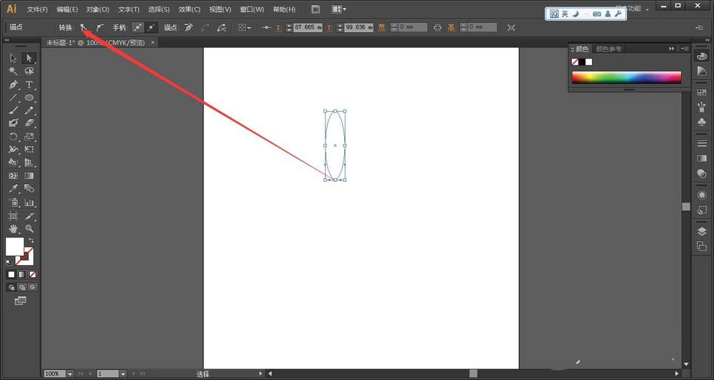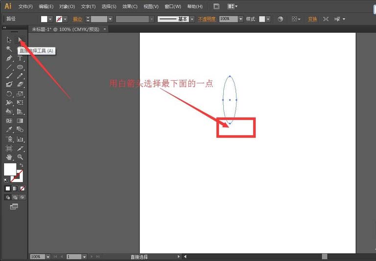 3、用白箭头选择椭圆最下面的一点,
