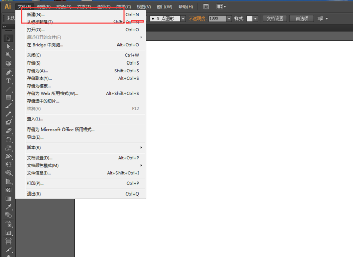 不管我们用到什么软件,首先的步骤就是建立一个新文件。双击打开Illustrator CS6软件,点击标题栏中的文件,在弹出的子菜单中点击“新建”设置画布大小。或者快捷键【ctrl+n】新建文件。(如下图)