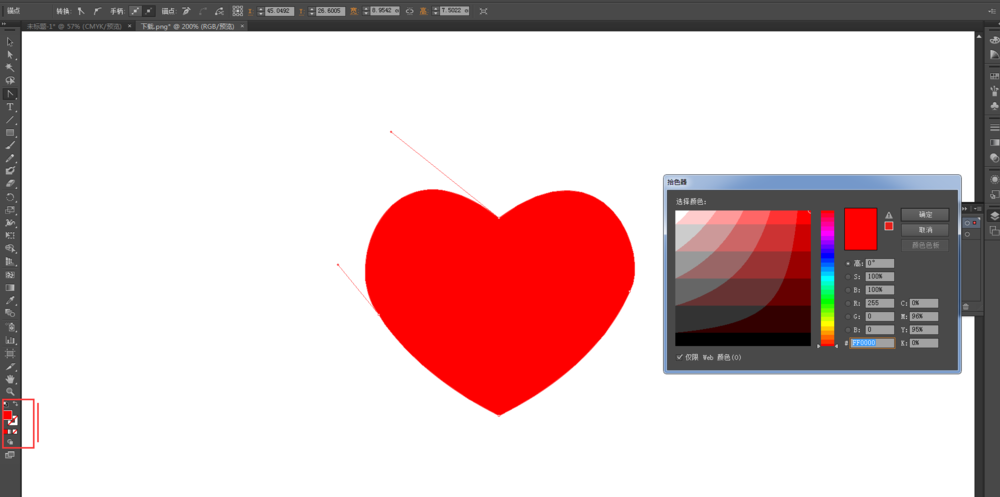 4、红心填充颜色:点击工具箱中的填充工具,点击打开,在色板中找到红心专属的颜色,然后点击确认。一个红心就差不多制作出来了。(如下图)