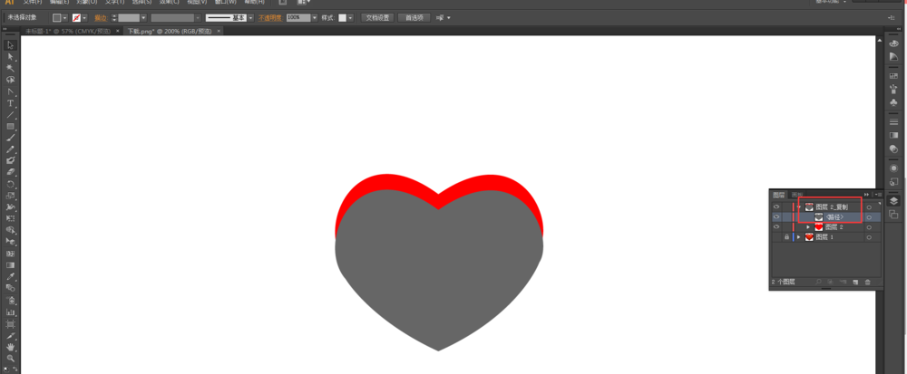 5、给红心添加效果:点击右边工具箱中的图层面板,点击图层,点击当前图层往下拖到新建图层按钮上。创建一个图层副本。然后给图像填充灰色。(如下图)