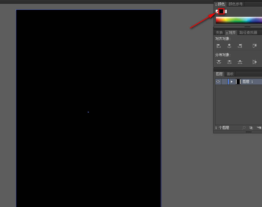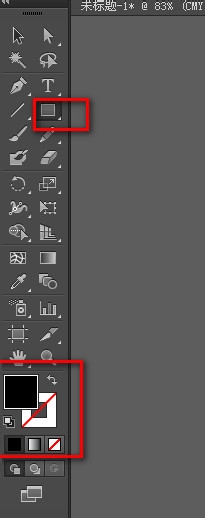 2、我们在工具栏上选择矩形工具,边框选择无,填充色选黑色,在页面上画个黑色的矩形。