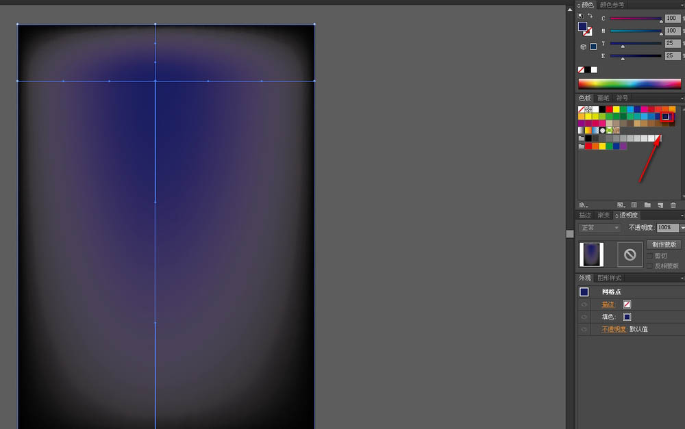 3、我们再用工具栏上的网格工具,在黑色矩形上增加个点,填充为深蓝色。如图所示。