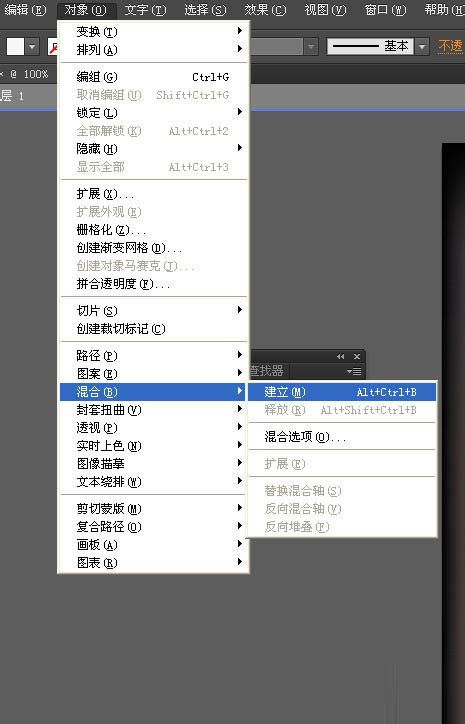 8、我们保持同时选中这俩个矩形,我们在菜单上选择,对象-混合-混合选项,调出混合工具。