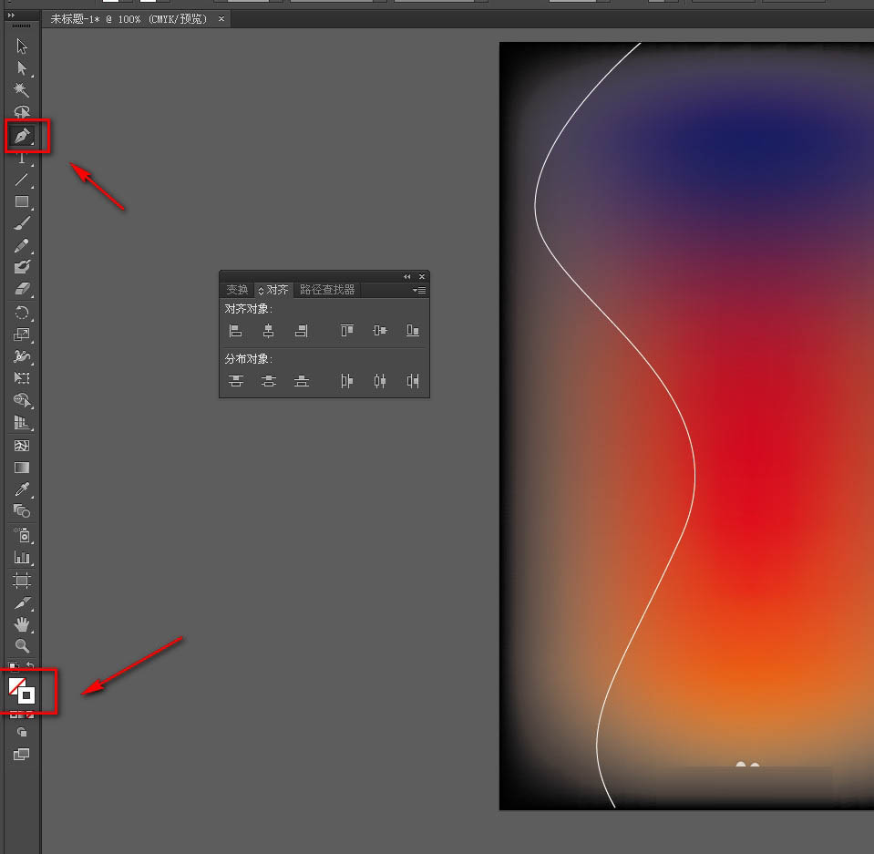 12、我们再在工具栏上选择钢笔工具,填充选无,画一个如图一样的曲线路径。