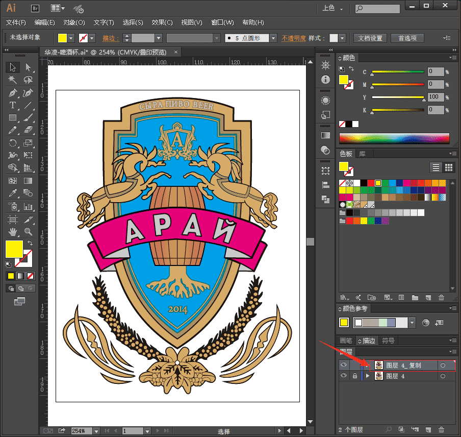 1、用AI打开这个素材,复制一层在上面锁定下面的层。