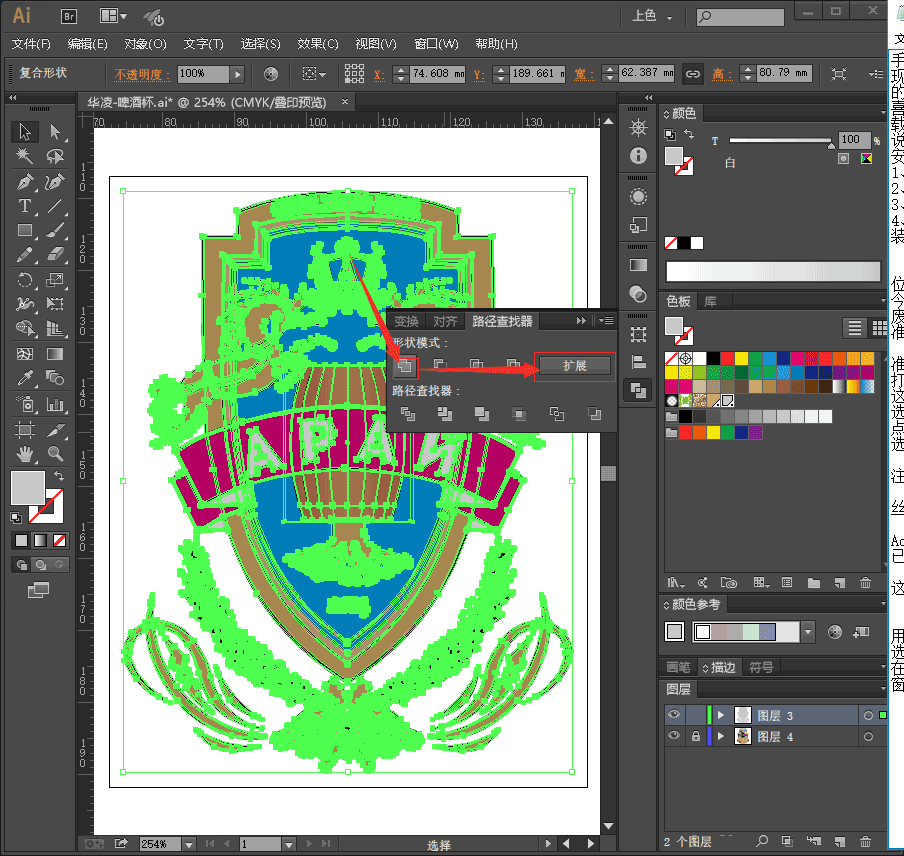 4、窗口-路径查找器,按住ALT键点焊接-扩展
