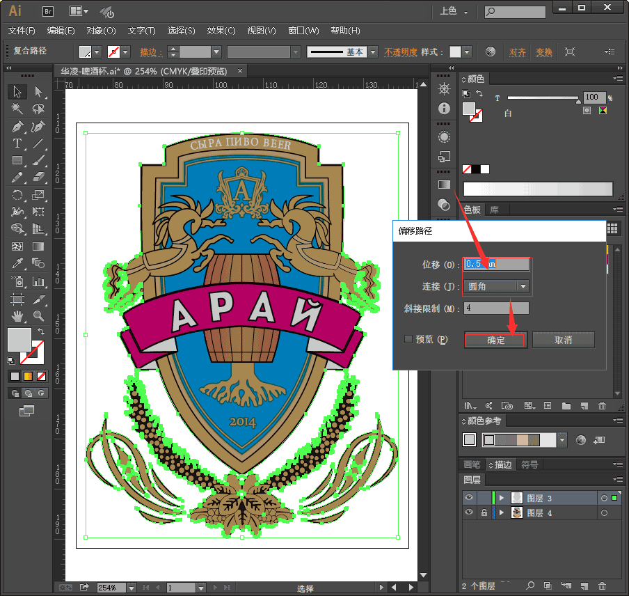 5、对象-路径-偏移路径,位移:0.5mm;连接:圆角;点确定。