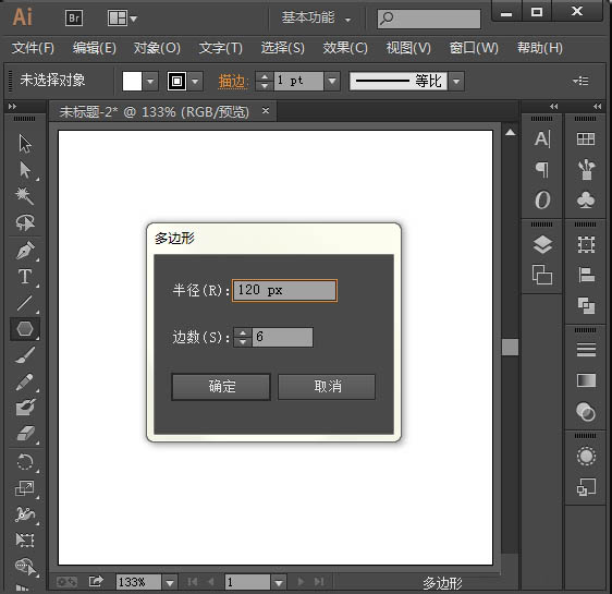 b.鼠标在画板上单击一下,弹出如图所示的多边形属性框,输入半径和变数,确定