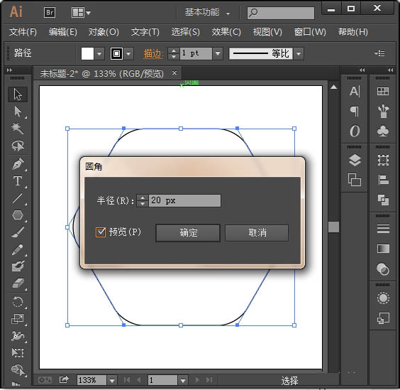 选中刚绘制好的多边形,点击菜单栏-效果-风格化-圆角