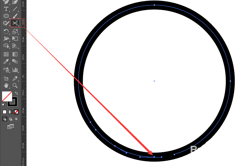 2、用剪刀点击你想剪切的部分,要在线上,再次点击,形成线段,选中这根线段,按delete键删除这段线。