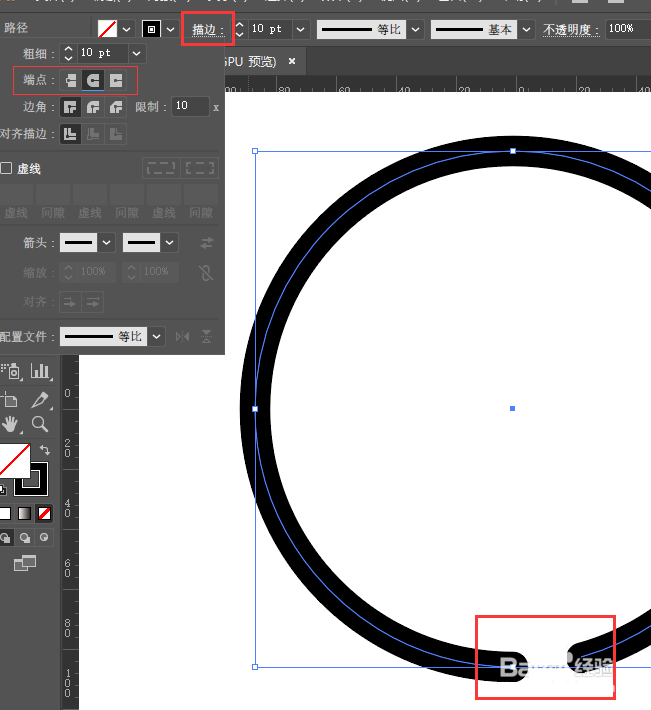 3、在菜单属性栏选择描边,设置端点为圆形,效果如图: