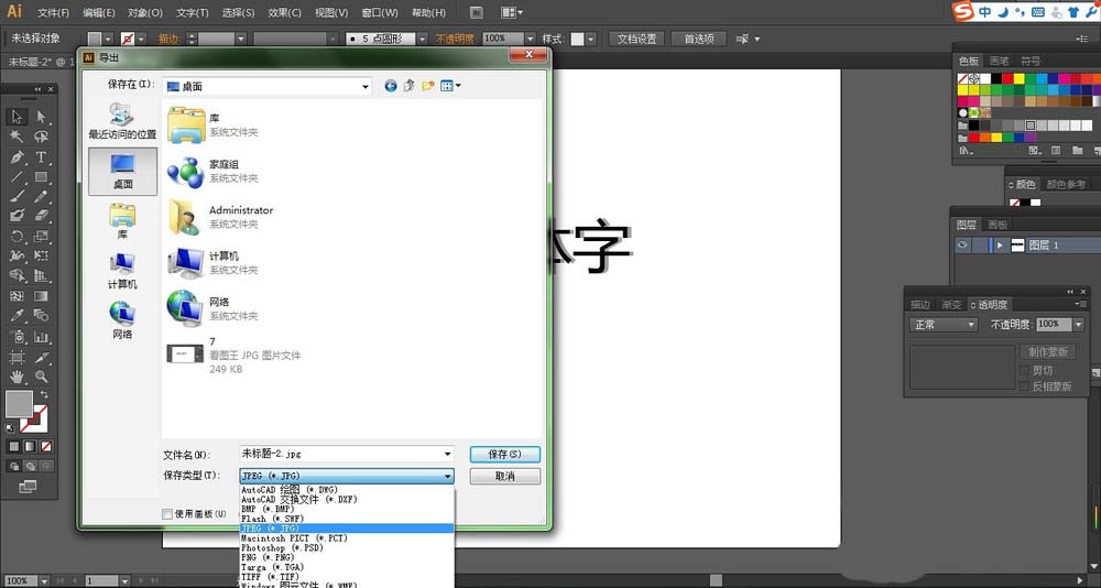 第六部:最后保存图片。选中文件,点导出,会跳出一个界面,选中JPG格式,保存就OK了。