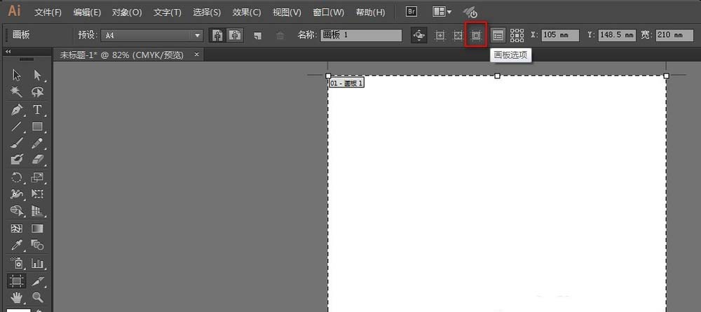 第二种方法,直接点击左侧工具箱里面的画板工具(快捷键Shift+O)