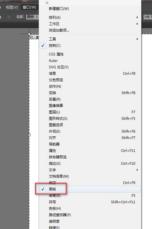 第三种方法,新建画板后,在“窗口”菜单里找到“画板”选项