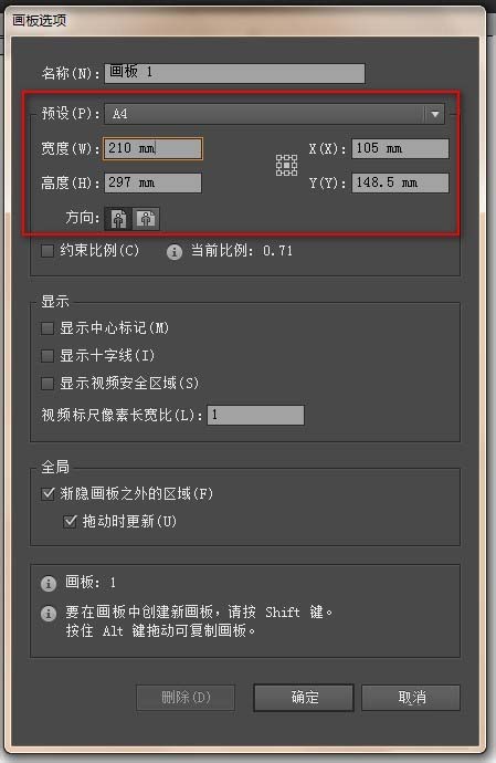 在弹出的画板选项里填写你需要的尺寸数值,然后点击确定即可