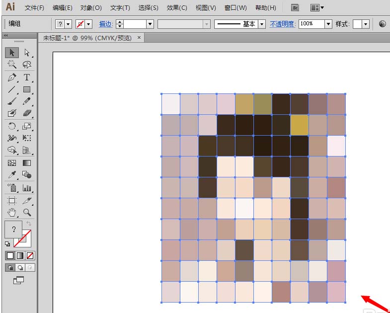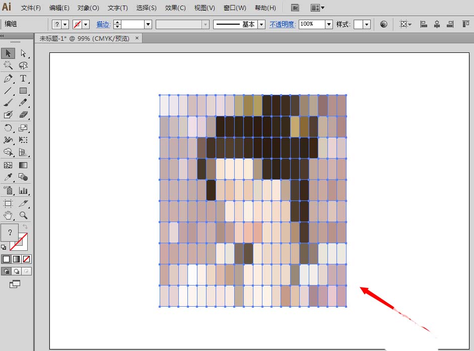9、再选中马赛克图片,点击菜单栏的“对象”——“取消编组”