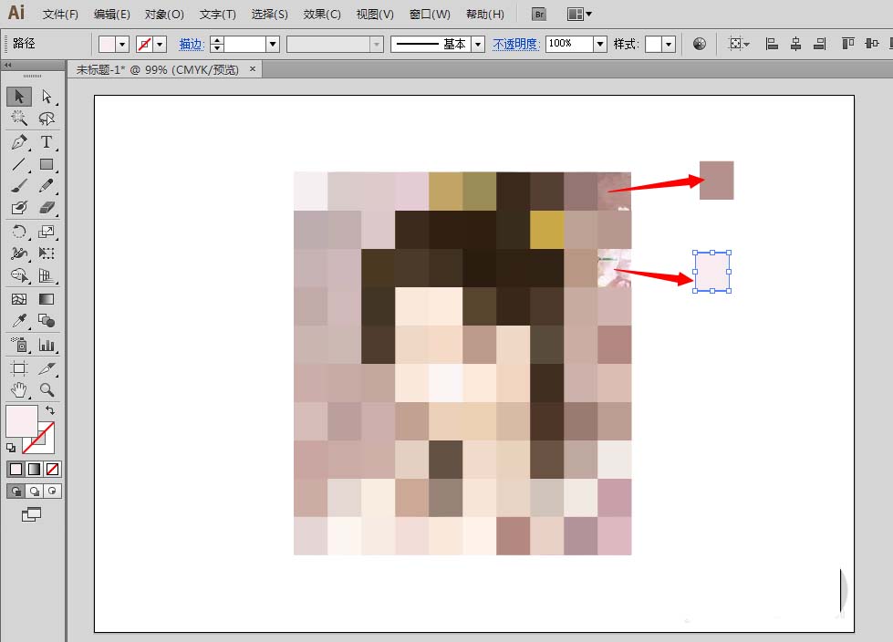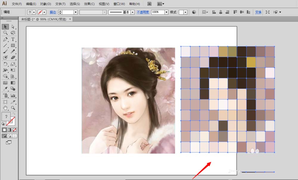 8、我们可以使用黑色箭头选择工具,把上面的马赛克图片移动到右边