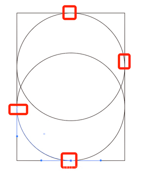 1)利用矩形工具(M)和圆形工具(L)绘制出如下图形。画圆形的时候要注意让它的边落在矩形的边上,画完第一个圆形之后crtl+c,ctrl+f复制一个圆在原位然后往下移动。
