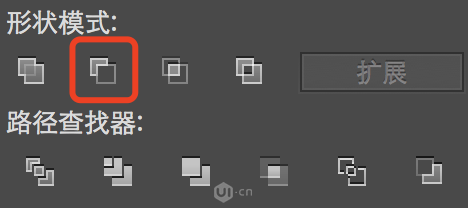 4)选中以上路径,找到路径选择器,选择"联集",去除多余的圆形,完成身体轮廓的制作。