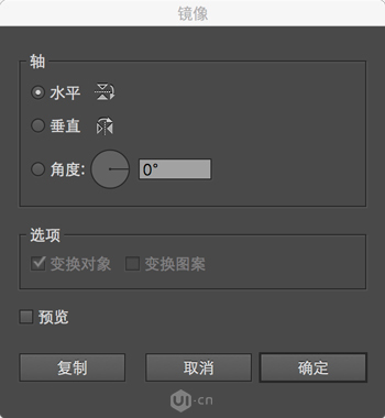 1)制作下颚。选中嘴巴路径,crtl+c,ctrl+f复制一个在原位后,利用"对象-变换-对称-水平对称"得到下颚,缩小到适合的大小。