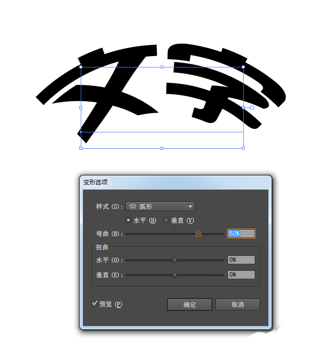 2、选择任意的一种文字变形效果,接着会弹出如图所示的“变形选项”面板