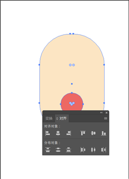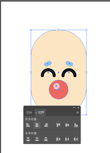 确保鼻子和脸处于居中在同一水平线,我们可以选中鼻子和脸打开对齐面板,单击水平居中对齐,让这2个对象居中。