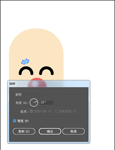 选择圆角矩形工具画一个淡蓝色的眉毛,大小为10x5px,保持对象的选择,然后双击旋转工具,设置为20度
